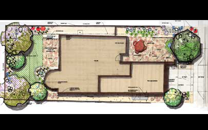 - Custom residential yard site planning utilizing outdoor spaces as extensions of the indoor environment and programming the yard as outdoor "rooms"