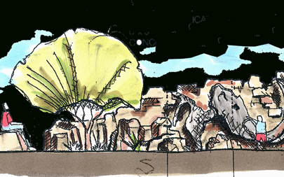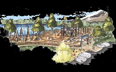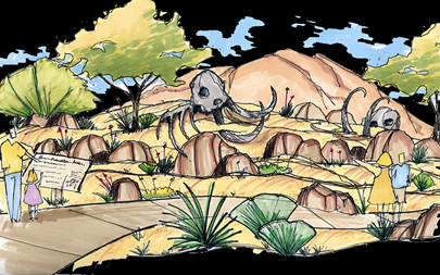 - Mammoth fossil walls along wash walls incorporating the planting zones of Nevada Arboretum interpretive trail